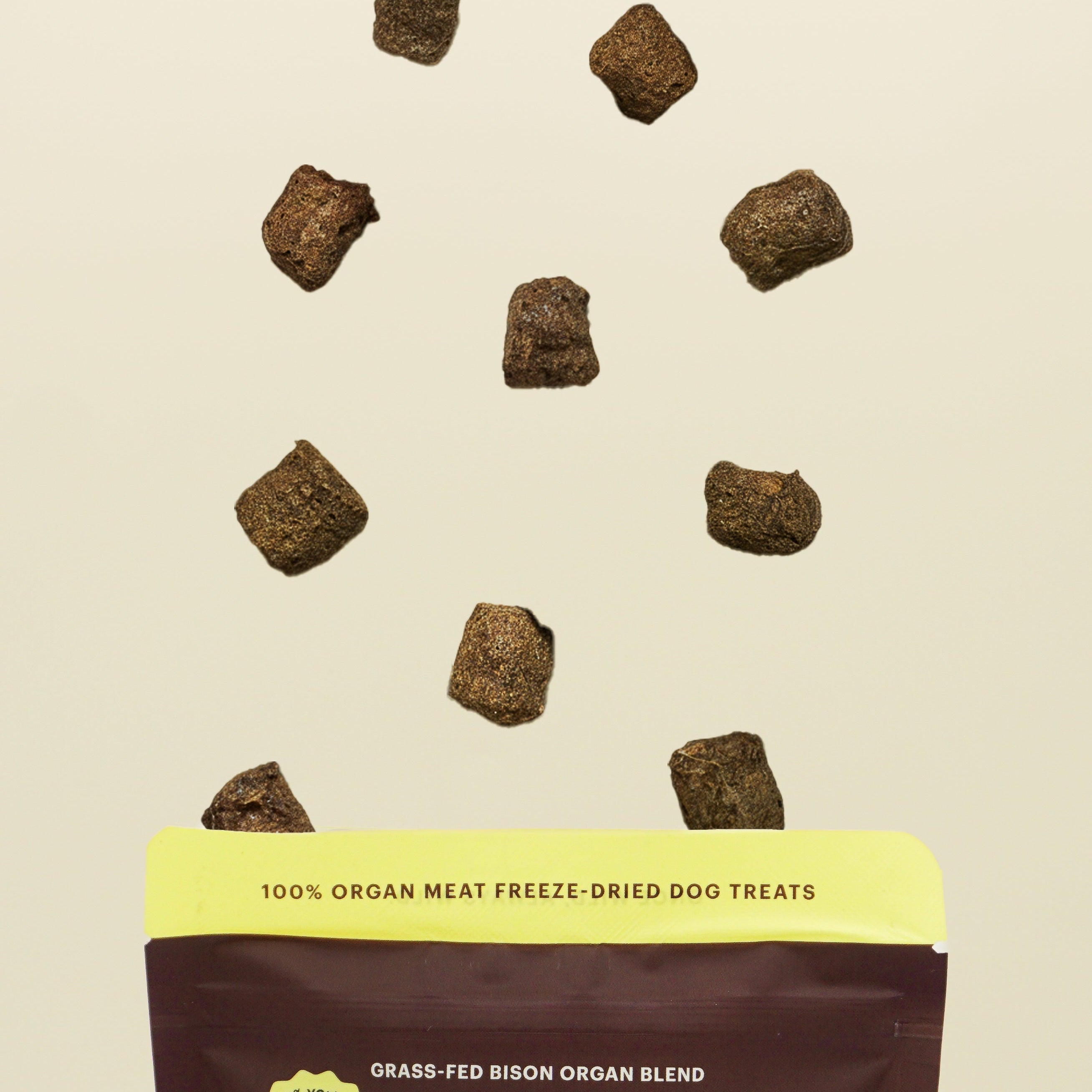 Instead of letting nutrient-rich organs go to waste, we give them purpose by turning them into treats your dog will love. It's about using every part nature provides with nose-to-tail nutrition that honors both the animal and the planet.
